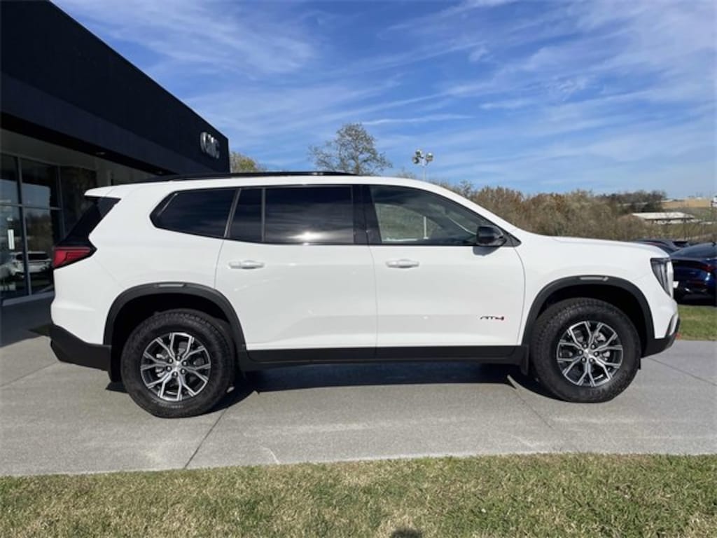 Check out all these great options All-Weather Package (LPO) (1st & 2nd Row All-Weather Floor Mats, 3rd Row All-Weather Floor Liner (LPO), and All-Weather Rear Cargo Mat (LPO)), Luxury Package (8 Diagonal Head-Up Display, Heated & Ventilated Driver & Front Passenger Seats, Heated Rear Outboard Seating Positions, Heated Wiper Park, and Laminated Acoustic Glass), Preferred Equipment Group 4SB, 12 Speakers, 3.49 Final Drive Axle Ratio, 3rd row seats: split-bench, 4-Wheel Disc Brakes, 6-Way Power Front Passenger Seat Adjuster, 7-Passenger Seating (2-2-3 Seating Configuration), 8-Way Power Driver Seat Adjuster, ABS brakes, Air Conditioning, Alloy wheels, AM/FM radio: SiriusXM with 360L, Auto High-beam Headlights, Auto-dimming Rear-View mirror, Automatic temperature control, Bodyside moldings, Bose Premium 12-Speaker System w/Sub-Woofer, Brake assist, Bumpers: body-color, Cloth/CoreTec Seat Trim, Compass, Delay-off headlights, Driver 2-Way Power Lumbar Seat Adjuster, Driver door bin, Driver vanity mirror, Dual front impact airbags, Dual front side impact airbags, Electronic Stability Control, Emergency communication system: OnStar Services capable, Exterior Parking Camera Rear, Four wheel independent suspension, Front anti-roll bar, Front Bucket Seats, Front Center Armrest, Front dual zone A/C, Front fog lights, Front Passenger Power Lumbar Seat Adjuster, Front reading lights, Fully automatic headlights, Garage door transmitter, Heated door mirrors, Heated Driver & Front Passenger Seats, Heated front seats, Heated steering wheel, Illuminated entry, Leather steering wheel, Low tire pressure warning, Molded Front & Rear Splash Guards (LPO), Navigation System, Occupant sensing airbag, Outside temperature display, Overhead airbag, Overhead console, Panic alarm, Panoramic Power Sunroof w/Sunshade, Passenger door bin, Passenger vanity mirror, Power door mirrors, Power driver seat, Power Liftgate, Power passenger seat, Power steering, Power windows, Radio data system, Radio: 15 Premium GMC Infotainment System, Rear air conditioning, Rear anti-roll bar, Rear reading lights, Rear side impact airbag, Rear window defroster, Rear window wiper, Remote keyless entry, Security system, SiriusXM w/360L, Speed control, Speed-sensing steering, Split folding rear seat, Spoiler, Sport steering wheel, Steering wheel mounted audio controls, Tachometer, Telescoping steering wheel, Tilt steering wheel, Traction control, Trip computer, Turn signal indicator mirrors, Variably intermittent wipers, Voltmeter, Wheels: 18 x 8 Dark Machined Aluminum, and Wireless Apple CarPlay/Android Auto. Summit White 2026 GMC Acadia AT4 AWD 8-Speed Automatic 2.5L DOHC