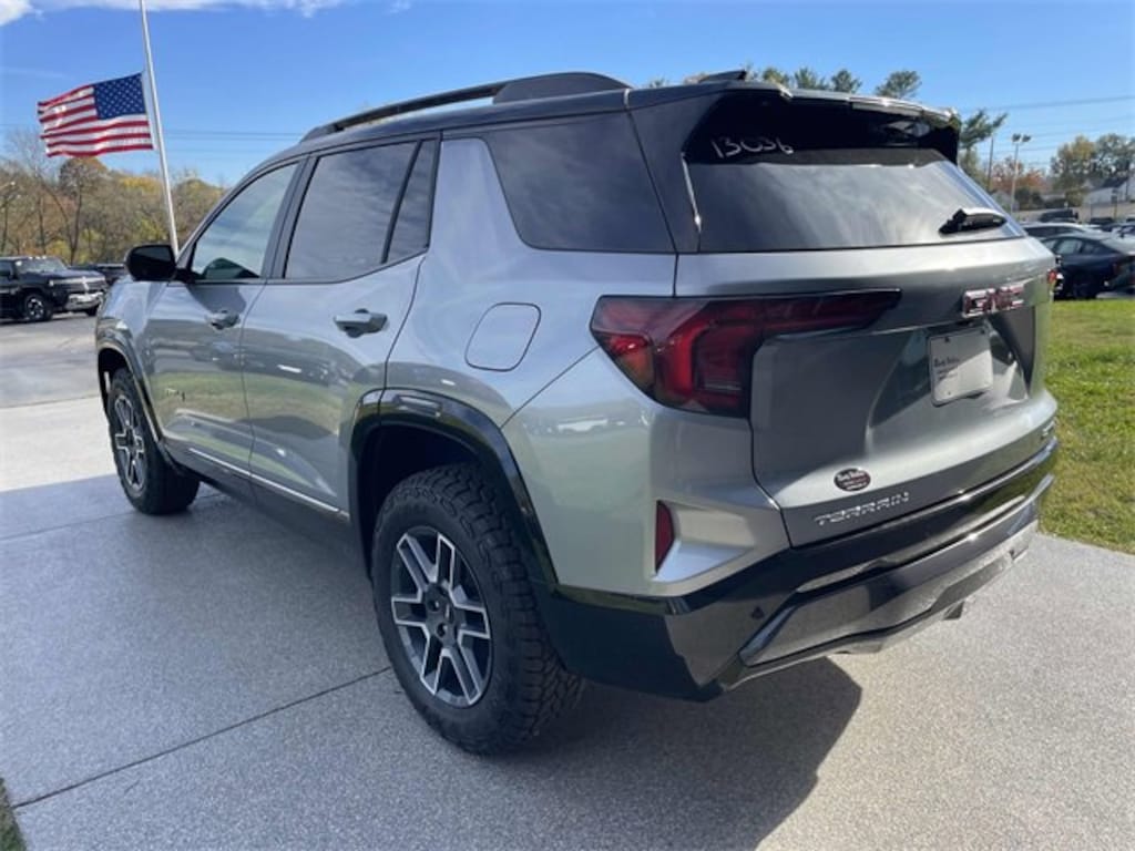Check out all these great options Convenience Package III (2-Way Power Front Passenger Lumbar Seat Adjuster, 8-Way Power Passenger Seat Adjuster, Heated Rear Outboard Seats, Ventilated Driver Seat, and Ventilated Front Passenger Seat), Floor Liner Package (LPO) (All-Weather Cargo Mat (LPO), Front All-Weather Floor Liners (LPO), and Second Row All-Weather Mat (LPO)), Memory Package, Preferred Equipment Group 4SB, Technology Package II (HD Surround Vision, Rear Camera Mirror, Rear Camera Mirror Washer, Rear Pedestrian Alert, and Traffic Sign Recognition), 2-Way Power Driver Lumbar Seat Adjuster, 3.47 Final Drive Axle Ratio, 4-Wheel Disc Brakes, 6 Speakers, 6-Speaker Audio System Feature, 8-Way Power Driver Seat Adjuster, ABS brakes, Air Conditioning, Alloy wheels, AM/FM radio: SiriusXM, Auto High-beam Headlights, Automatic temperature control, Brake assist, Bumpers: body-color, Cloth/Core Tec Seat Trim, Compass, Delay-off headlights, Driver & Front Passenger Heated Seats, Driver door bin, Driver vanity mirror, Dual front impact airbags, Dual front side impact airbags, Ebony Twilight Metallic Roof, Ebony Twilight Mirror Caps, Electronic Stability Control, Emergency communication system: OnStar and GMC connected services capable, Four wheel independent suspension, Front anti-roll bar, Front Bucket Seats, Front Center Armrest, Front dual zone A/C, Front fog lights, Front Passenger 4-Way Manual Seat Adjuster, Front reading lights, Fully automatic headlights, Garage door transmitter, Heated door mirrors, Heated front seats, Heated steering wheel, Illuminated entry, Low tire pressure warning, Navigation System, Occupant sensing airbag, Outside temperature display, Overhead airbag, Overhead console, Panic alarm, Passenger door bin, Passenger vanity mirror, Power door mirrors, Power driver seat, Power Liftgate, Power steering, Power windows, Radio data system, Radio: Premium GMC Infotainment System, Rain sensing wipers, Rear air conditioning, Rear anti-roll bar, Rear seat center armrest, Rear window defroster, Rear window wiper, Remote keyless entry, Security system, SiriusXM w/360L Trial Subscription, Speed control, Speed-sensing steering, Split folding rear seat, Spoiler, Sport steering wheel, Steering wheel mounted audio controls, Tachometer, Telescoping steering wheel, Tilt steering wheel, Traction control, Trip computer, Variably intermittent wipers, Wheels: 17 Dark Machined Aluminum, and Wireless Apple CarPlay/Wireless Android Auto. Sterling Metallic 2026 GMC Terrain AT4 AWD 8-Speed Automatic with Overdrive 1.5L DOHC